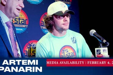 L’attaquant des Rangers de New York Artemi Panarin répond aux questions des médias le 4 février après le match des…