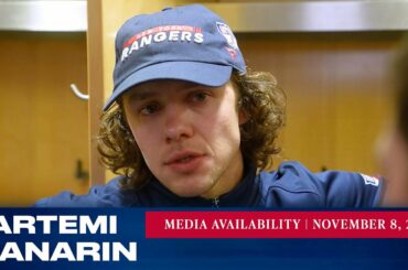 L’attaquant des Rangers de New York Artemi Panarin répond aux questions des médias après le match du 8 novembre contre…