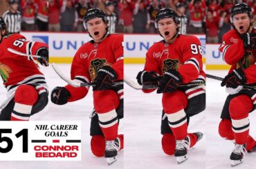 Revivez les 51 buts de Connor Bédard avec les Blackhawks, depuis ses débuts le 11 octobre 2023 contre les Bruins…