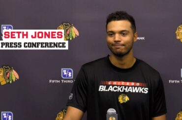 Seth Jones s’adresse aux médias lors du premier jour du camp d’entraînement ! Abonnez-vous : https://youtube.com/blackhawks Tiktok : https://www.tiktok.com/@nhlblackhawks Instagram :…