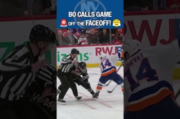 L’attaquant des Islanders de New York Bo Horvat marque lors de la mise en jeu pour vaincre les Devils du…