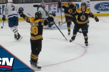David Pastrnak marque à la fin du jeu de puissance, inscrivant son 57e but de la saison et donnant aux…
