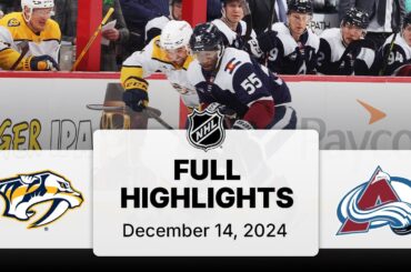 Regardez les faits saillants complets du match entre les Predators de Nashville et l’Avalanche du Colorado le 14 décembre 2024,…