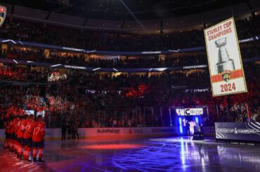 Regardez les Panthers de la Floride dévoiler la bannière du Championnat de la Coupe Stanley 2023-24 avant le match d’ouverture…