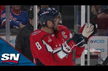 Regardez le capitaine des Capitals de Washington Alex Ovechkin poursuivre l’attaquant des Rangers de New York Barclay Goodrow pour un…