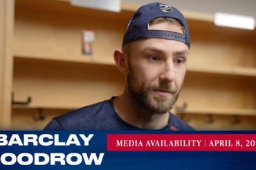 L’attaquant des Rangers de New York Barclay Goodrow répond aux questions des médias après le match du 8 avril contre…