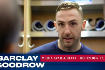 L’attaquant des Rangers de New York Barclay Goodrow répond aux questions des médias après le match du 22 décembre contre…