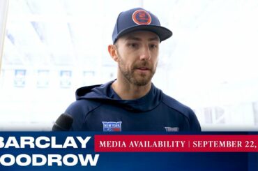 L’attaquant des Rangers de New York Barclay Goodrow répond aux questions des médias après le deuxième jour du camp d’entraînement…