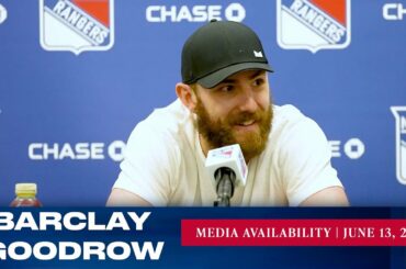 L’attaquant des Rangers de New York Barclay Goodrow a été mis à la disposition des médias le 13 juin. »…