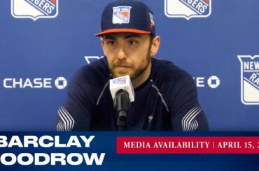 L’attaquant des Rangers de New York Barclay Goodrow répond aux questions des médias après l’entraînement du 15 avril. » Abonnez-vous…