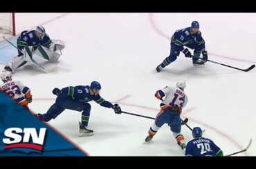 Regardez l’attaquant Bo Horvat marquer son premier but avec les Islanders de New York après avoir été échangé par les…