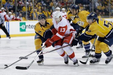 Patrick Kane égalise pour les Red Wings, tirant par-dessus l’épaule de Cam Talbot pour porter le score à 1-1 contre…
