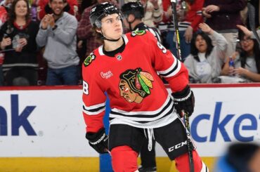 L’attaquant des Blackhawks, Connor Bedard, lance un méchant un-temps pour étendre l’avance de Chicago à 2-0 sur les Jets Rester…