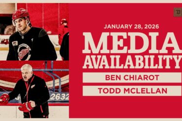 Ben Chiarot et Todd McLellan parlent avec les médias après l’entraînement de Détroit le mercredi 28 janvier 2026.
