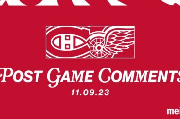 Dylan Larkin, Ben Chiarot et Derek Lalonde parlent avec les médias après le match Red Wings-Canadiens le jeudi 9 novembre…