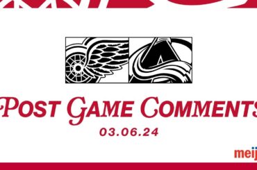 Ben Chiarot, Moritz Seider et Derek Lalonde parlent avec les médias après le match de Détroit contre l’Avalanche du Colorado,…