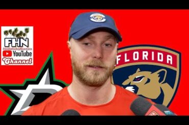 Le centre des Panthers de la Floride, Sam Bennett, prend la parole après que son équipe ait battu les Stars…