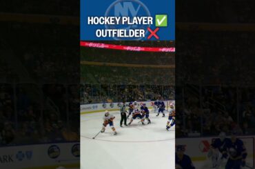 L’attaquant des Islanders de New York Bo Horvat juge mal la trajectoire d’une rondelle volante destinée au filet vide, et…