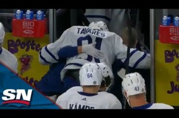 Regardez comme John Tavares prend par inadvertance une rondelle à l’arrière de sa jambe gauche et est forcé de quitter…