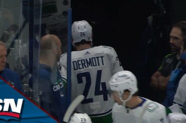 Regardez alors que le défenseur des Canucks de Vancouver Travis Dermott est contraint de quitter le match avec une blessure…