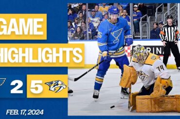 Faits saillants d’une défaite 5-2 des Blues de St. Louis contre les Predators de Nashville le 17 février 2024.