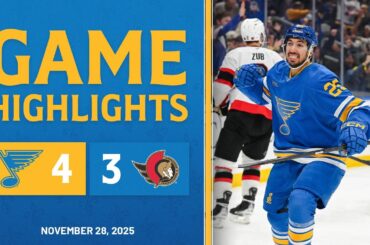 Voyez tous les faits saillants du match du vendredi 28 novembre opposant les Sénateurs d’Ottawa aux Blues de St. Louis