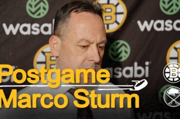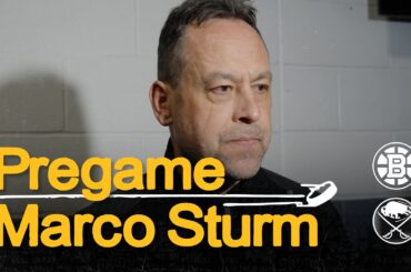 L’entraîneur-chef des Bruins, Marco Sturm, s’entretient avec les médias avant que les Bruins n’affrontent les Sabres de Buffalo samedi soir…