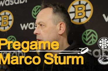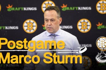 L’entraîneur-chef des Bruins, Marco Sturm, s’entretient avec les médias après la défaite des Bruins 5-4 lors d’une fusillade contre les…