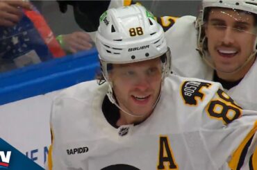 Regardez David Pastrnak faire un joli mouvement pour vaincre Simon Benoit et terminer le jeu en battant Anthony Stolarz et…