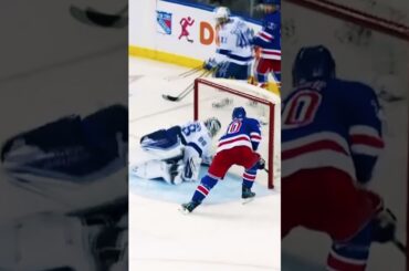 Mika Zibanejad passe entre les jambes et sur le poteau, mais heureusement, Chris Kreider est là pour le nettoyer !…