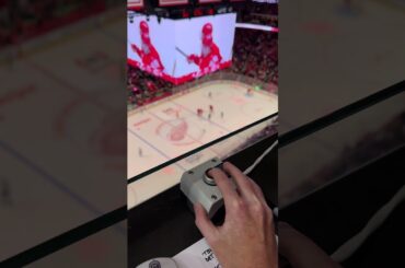 La toute première pression sur le nouveau bouton du klaxon de but des Red Wings de Détroit avec une arène…