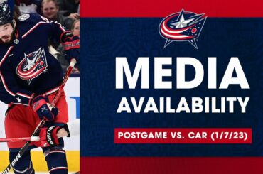 Les Blue Jackets de Columbus s’adressent aux médias après le match de jeudi contre les Ducks d’Anaheim au Nationwide Arena…
