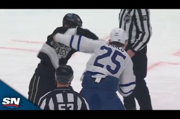 La Kings Jeff Malott et Maple Leafs Brandon Carlo laissent tomber les gants dans une inclinaison animée, ce qui leur…