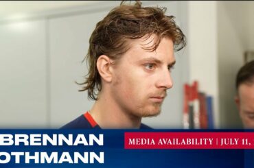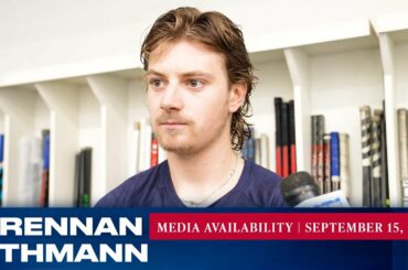 L’attaquant des Rangers de New York Brennan Othmann répond aux questions des médias avant le match préparatoire du 26 septembre…