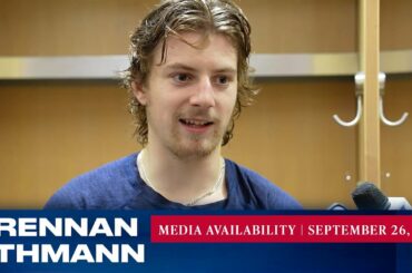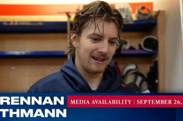 L’attaquant des Rangers de New York Brennan Othmann répond aux questions des médias après le match préparatoire du 26 septembre…