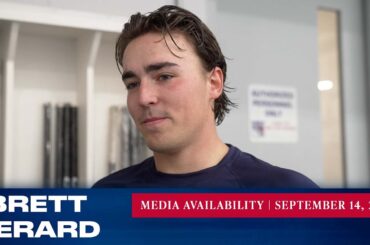 L’espoir des Rangers de New York, Brett Berard, répond aux questions des médias après le camp des recrues. » Abonnez-vous…