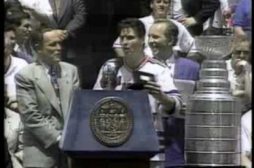 Images de la victoire de la coupe Stanley par les Rangers de New York en 1994, aux dépens des Canucks…