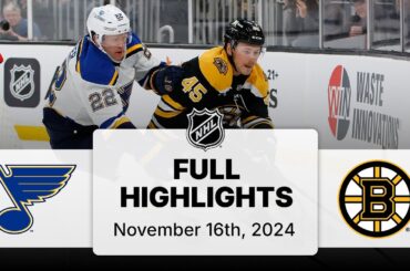 Regardez les faits saillants complets du match entre les Blues de St. Louis et les Bruins de Boston le 16…