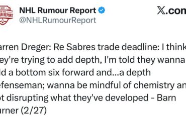 Darren Dreger : Concernant la date limite des échanges avec les Sabres : je pense qu’ils essaient d’ajouter de la…