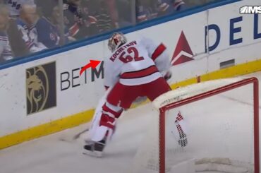 Sergei Bobrovsky tente un but du gardien mais est instantanément refusé par Andrei Svechnikov lors de la victoire 6-3 des…