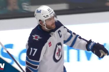 Regardez le capitaine des Jets de Winnipeg, Adam Lowry, dévier le tir de Dylan DeMelo depuis la pointe pour marquer…