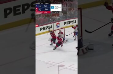 Le capitaine des Capitals de Washington, Alexander Ovechkin, écrase le filet et frappe dans la rondelle lâche pour marquer le…
