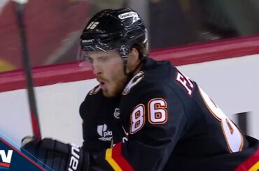 Regardez l’attaquant des Flames de Calgary Joel Farabee battre le gardien des Hurricanes de la Caroline Brandon Bussi pour marquer…
