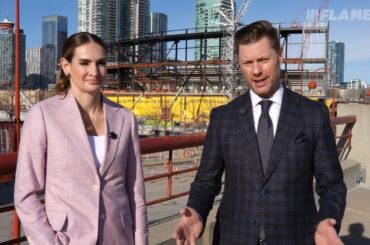Regardez l’attaquant des Flames de Calgary Morgan Frost attraper une passe et faire une passe douce à travers la zone…