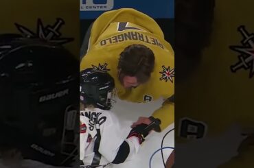 Alex Pietrangelo des Golden Knights de Vegas fait un câlin à ses enfants après leur match pendant l’entracte au match…