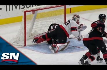 Regardez le défenseur des Hurricanes de la Caroline Brent Burns profiter de la vulnérabilité de Cam Talbot, marquant sur une…