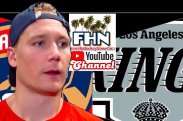 Le défenseur des Panthers de la Floride Gus Forsling parle après que son équipe ait perdu 2-1 contre les Kings…