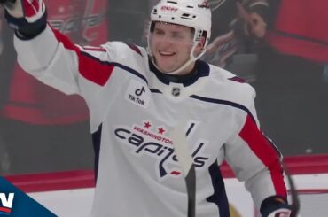 Regardez l’attaquant des Capitals de Washington Aliaksei Protas dévier un but contre les Devils du New Jersey avec moins d’une…