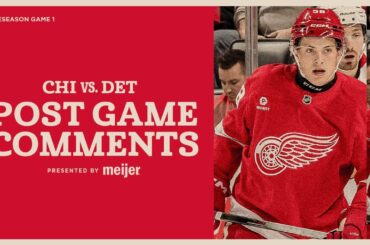 Emmitt Finnie, Carter Mazur et Todd McLellan parlent avec les médias après le match de pré-saison de Détroit contre les…