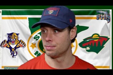 L’attaquant des Panthers de la Floride Carter Verhaeghe rencontre les médias après que son équipe a battu l’hôte du Minnesota…